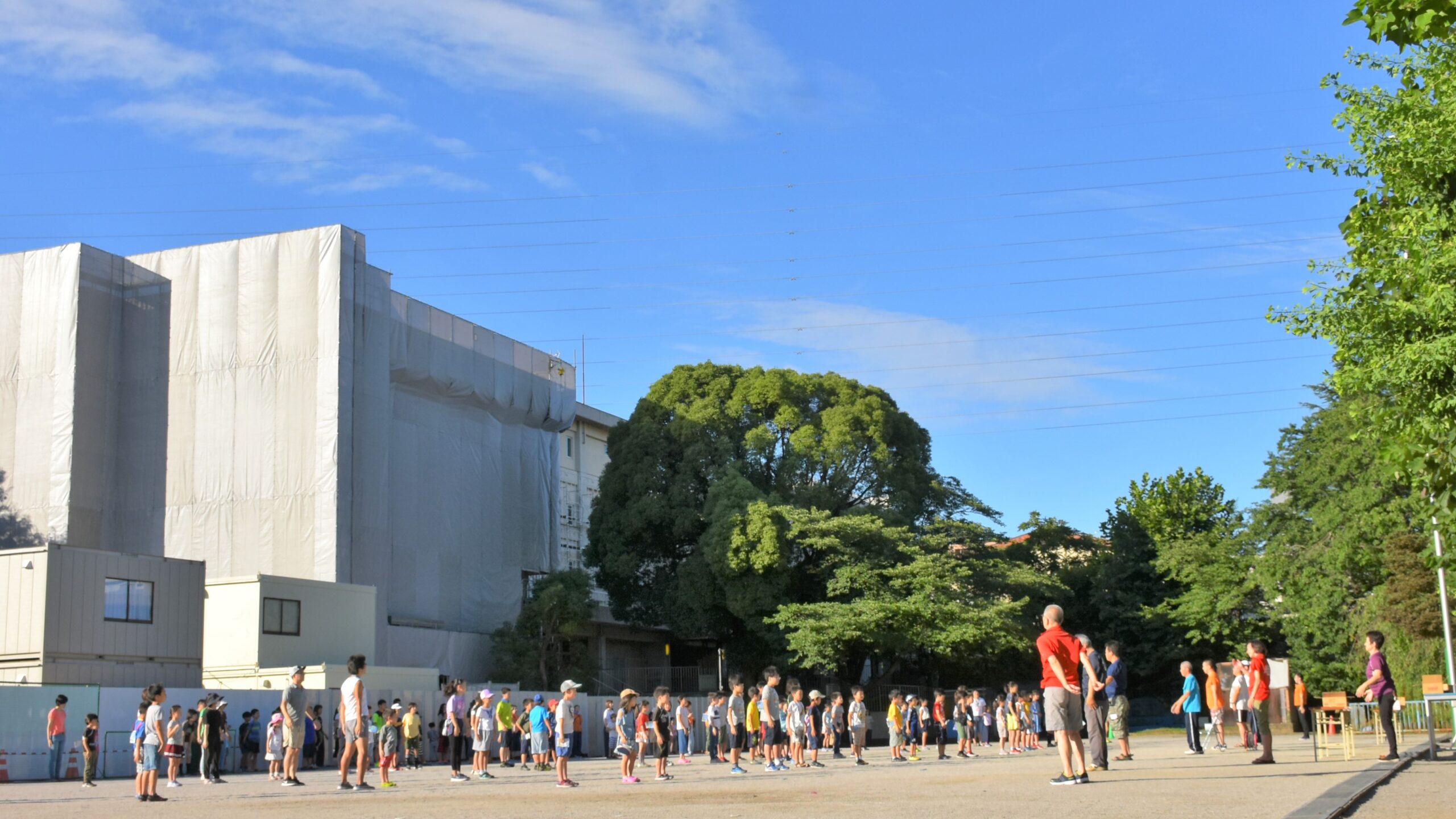 7月22日(月)から始まった夏休みラジオ体操。本日26日(金)が最終日となりました。時間前から会場の西有馬小学校には、大勢の参加者がありました。町会青少年部、子ども会、PTAなどの皆さんが中心となっての夏休み恒例行事です。