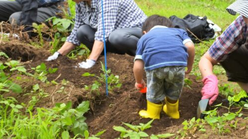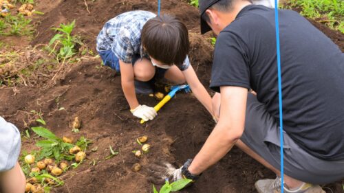 立派に育ったじゃがいもが次から次へと出てきました。この大収穫には子どもも大人も大喜び、笑顔が畑に溢れていました。