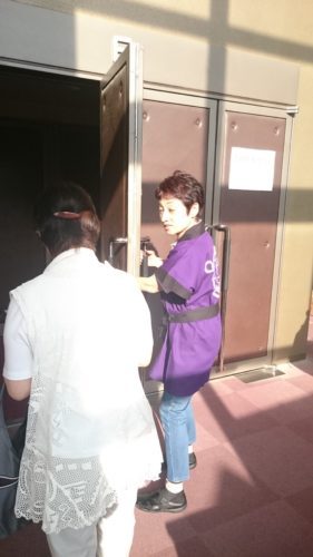 毎年恒例の太鼓ミーティングですが、宮前区青少年指導員連絡協議会では、毎年運営協力を行なっています。有馬町会青少年部から参加した青少年指導員2名も、ホール扉の開閉・来場者誘導、宮前ねぷたの警備を担当しました。